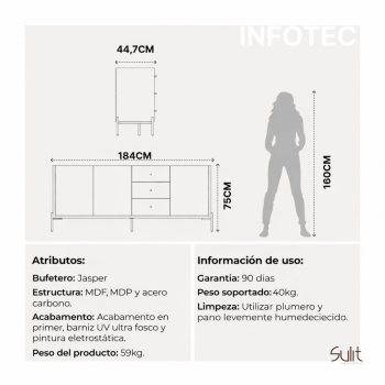 El Buffet Jasper con 3 cajones y 3 puertas es perfecto para sumar orden, practicidad y diseño moderno a tu hogar. Ideal para living, comedor u oficina.